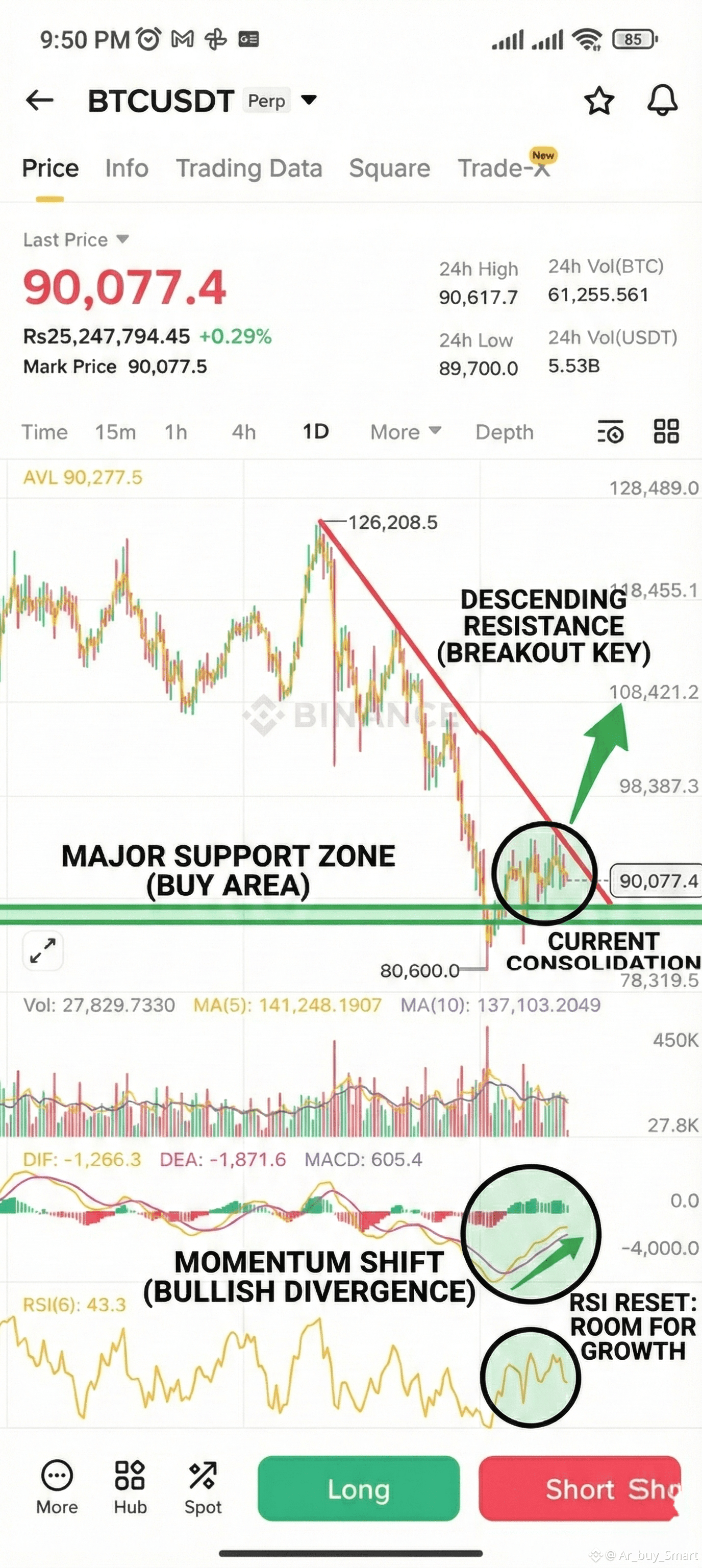 The panic phase is likely over. We are currently in an Accumulation Zone between $85k and $90k. While caution is always advised, the technical indicators suggest the risk-to-reward ratio heavily favors the bulls here for a relief rally at minimum.
