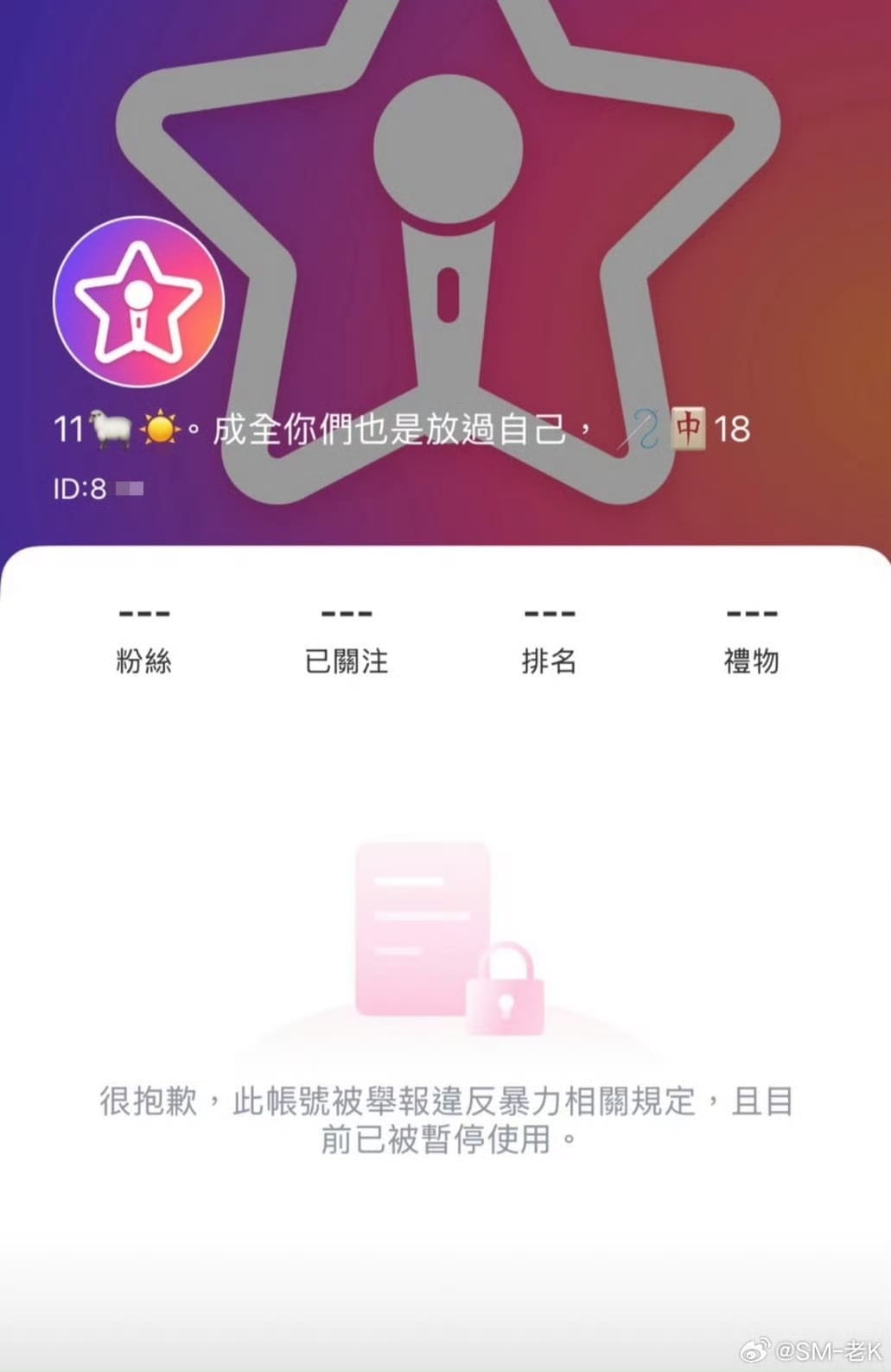 Dall'altro lato, io ero in Starmaker (SM), e a causa di cambiamenti nelle regole e denunce maliziose, il mio account è stato chiuso.