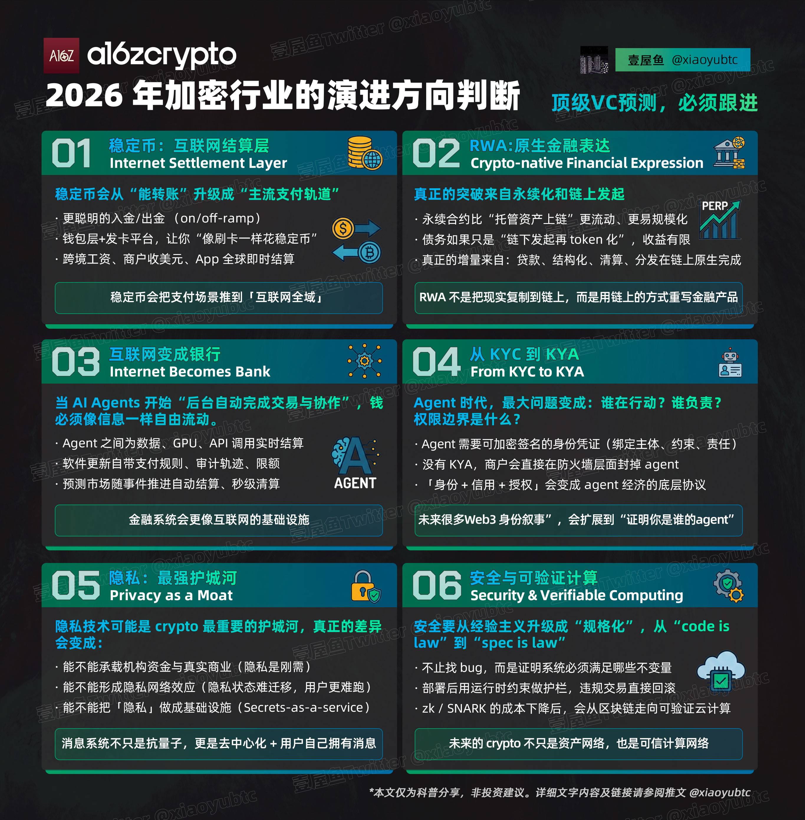 Guardando nel complesso, il rapporto di previsione di a16z per l'evoluzione dell'industria crypto nel 2026 è piuttosto pragmatico:
