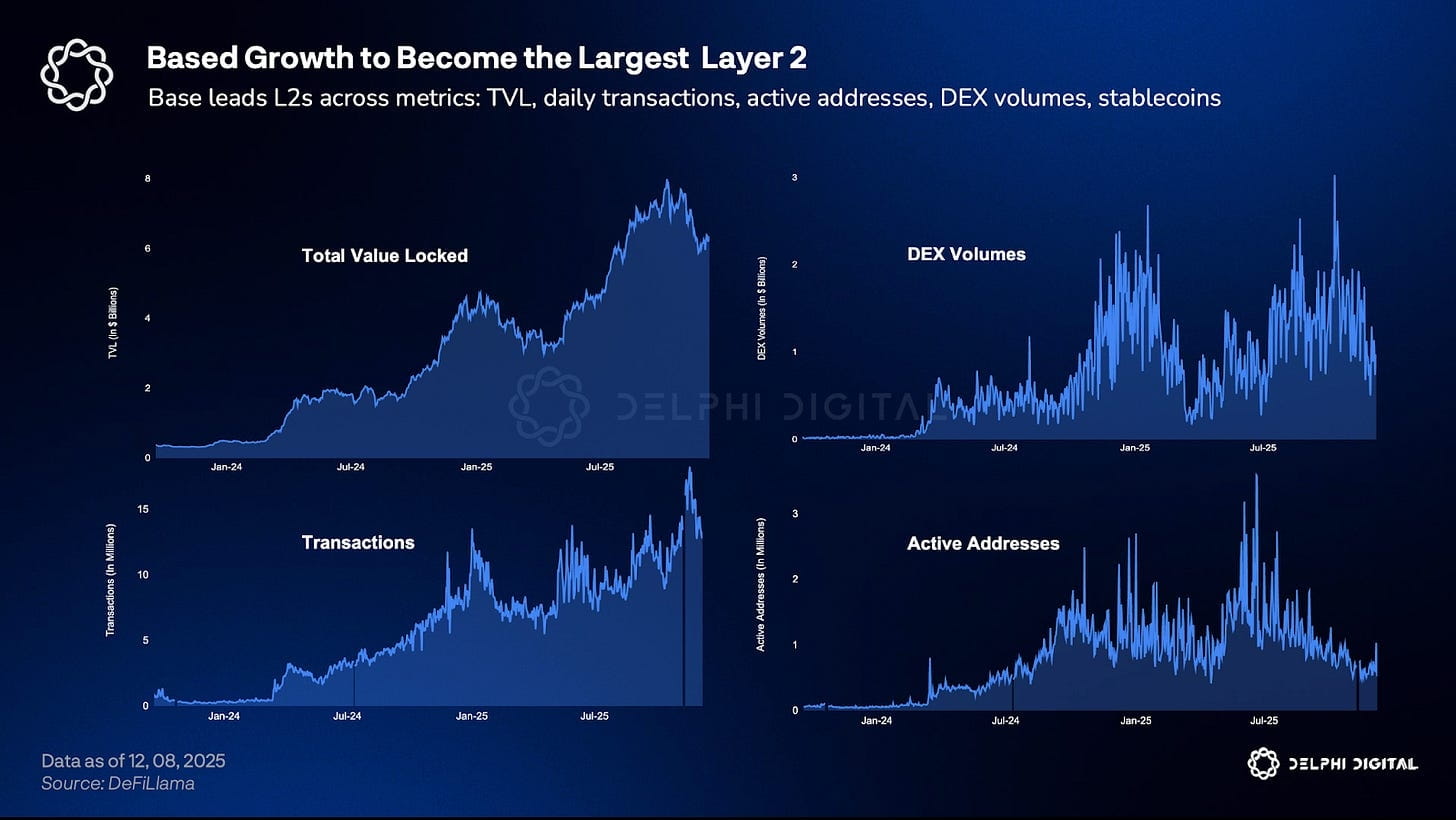 2. USDC: il più importante, entrate da Stablecoin (da rendimenti delle riserve USDC) nel terzo trimestre del 2025 sono aumentate a 354,7 milioni (+44% YoY). Il saldo delle Stablecoin tende a rimanere stabile nel mercato ribassista. Se USDC diventa la valuta principale in Coinbase Base e nei metodi di pagamento, creerà una base di entrate stabile senza dover attendere un mercato rialzista.