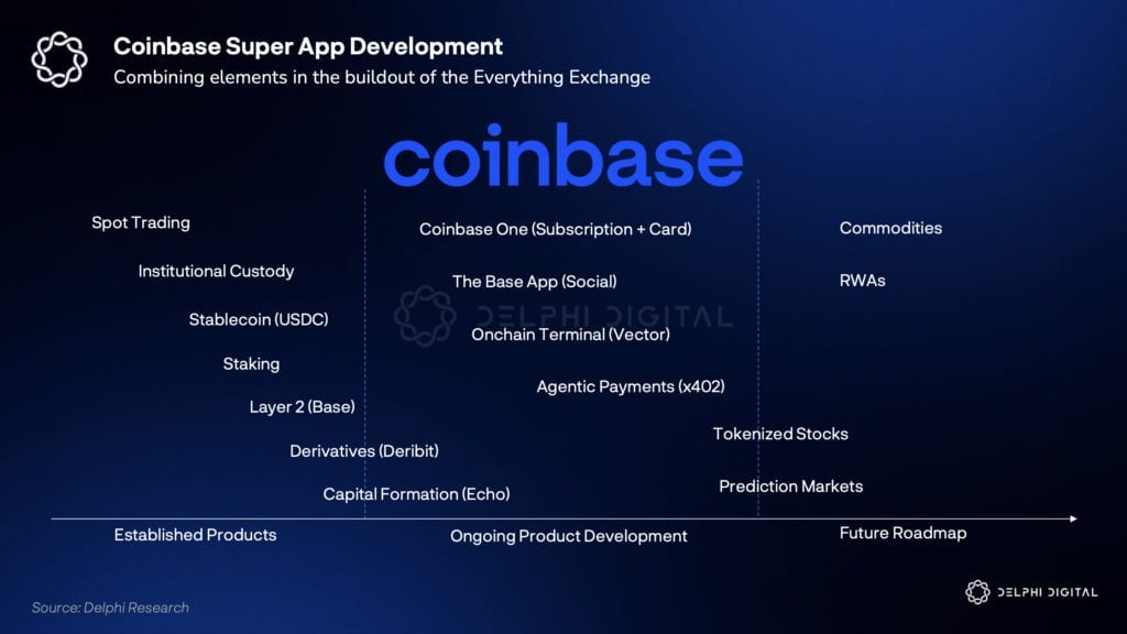Lettera agli azionisti del terzo trimestre di Coinbase chiarisce che vogliono diventare l'exchange per tutto. Stanno progredendo, ampliando gli asset di trading (coperte il 90% del valore di mercato delle criptovalute), espandendo i derivati, i pagamenti (USDC), Launchpad (Echo) e nuovi prodotti attraverso #Base. Questo è un segnale che il mercato sta centralizzando al livello dell'app.