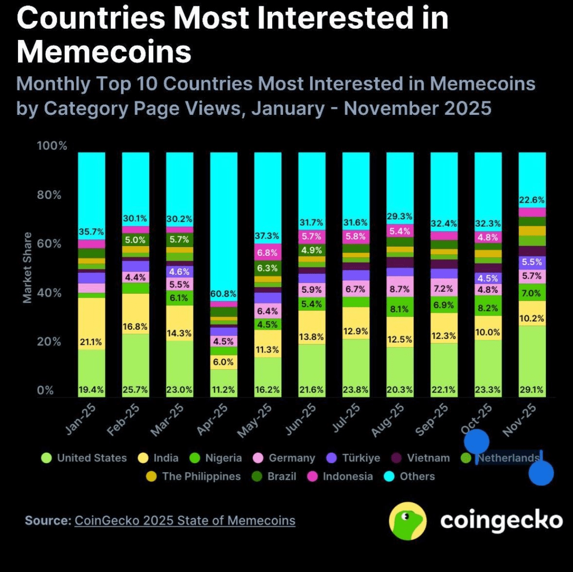 •Nel 2025, l'interesse globale per i memecoins È CROLATO del +80%