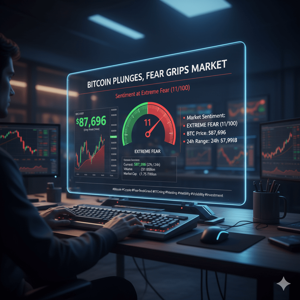 Il prezzo del Bitcoin è rimasto sopra $87.000 oggi mentre il sentiment di mercato e l'Indice di Paura e Avidità delle Crypto sono crollati a 11 su 100, un livello che segnala una paura estrema tra gli investitori.