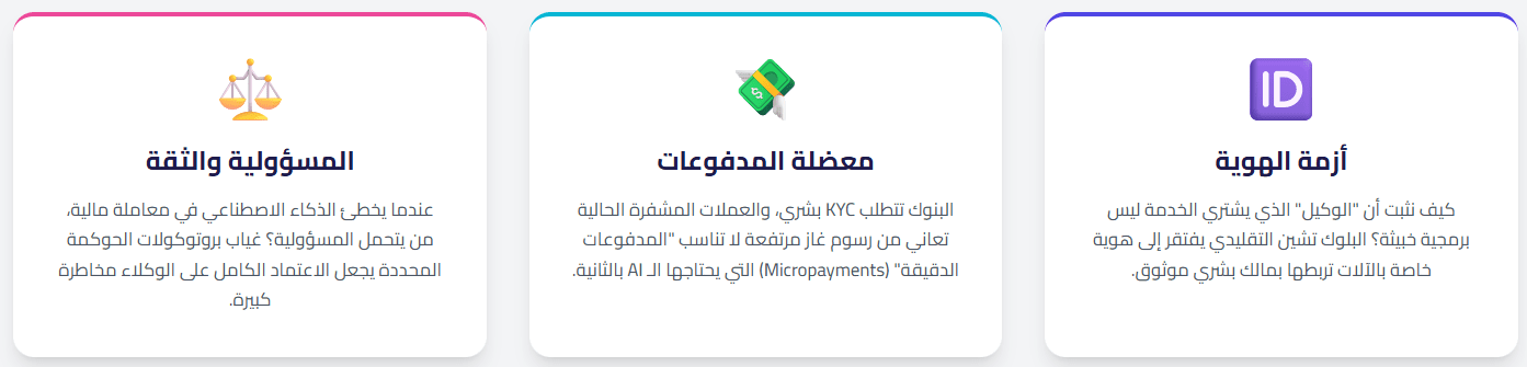 Ostacoli ai pagamenti (Payment Hurdles): I sistemi finanziari tradizionali richiedono carte di credito e verifica dell'identità umana (KYC), cosa che i robot non possiedono. Inoltre, le commissioni di transazione nella blockchain tradizionale possono essere molto elevate per le transazioni microscopiche (Micropayments) necessarie per l'intelligenza artificiale.