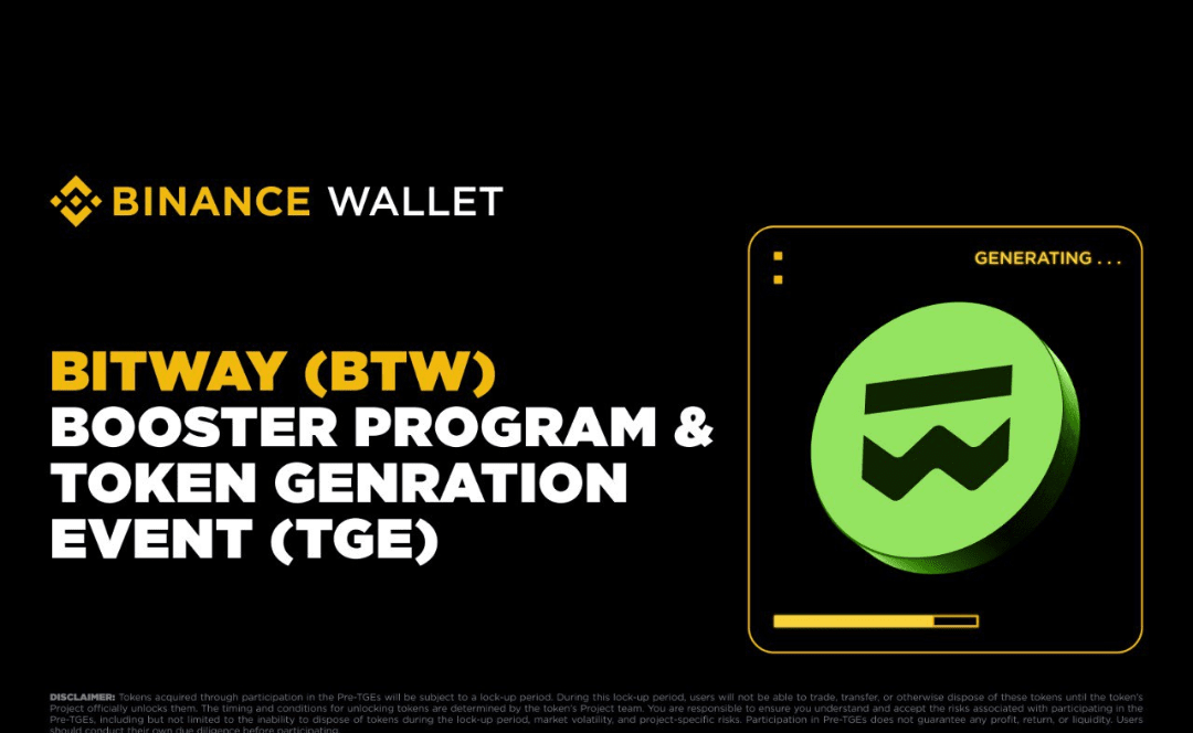Partecipa al Programma Booster esclusivo di Bitway (BTW) e all'Evento di Generazione Pre-Token (Pre-TGE) su Binance Wallet
