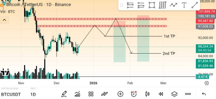 Le operazioni devono essere effettuate su entrambe le tue zone e l'obiettivo della prima operazione dovrebbe essere $94,000 e il primo obiettivo della seconda operazione dovrebbe essere $97,000 e qualsiasi parte della tua operazione rimasta deve essere mantenuta fino a $84,000-$85,000.