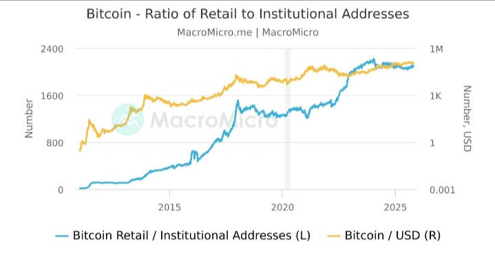 I dati di mercato fondamentali confermano che questa transizione è già completata. Gli investitori istituzionali controllano ora il 24% delle partecipazioni in criptovalute, mentre la partecipazione al dettaglio è diminuita del 66%, segnando uno dei più grandi cambiamenti di proprietà nella storia delle criptovalute. Quello che stiamo testimoniando non è una fase temporanea, ma un ripristino fondamentale della struttura di mercato.