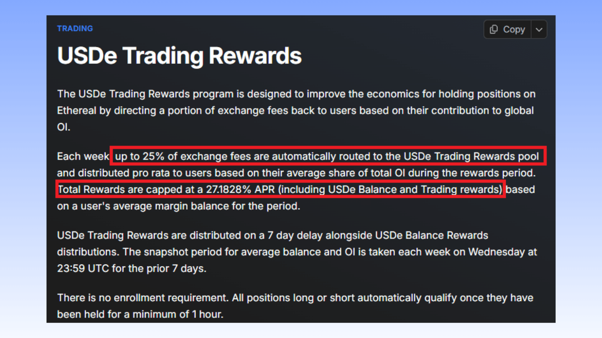 I premi di trading di Ethereal consentono agli utenti di valutare se partecipare in base al loro interesse aperto; l'IA può quindi calcolare i rendimenti stimati.