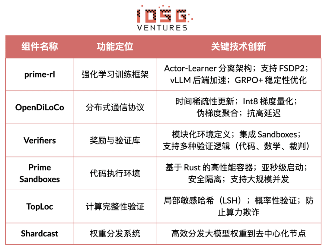 Il componente centrale dell'infrastruttura di Prime Intellect, il framework prime-rl, è progettato per ambienti distribuiti asincroni e altamente correlati all'apprendimento rinforzato, gli altri includono il protocollo di comunicazione OpenDiLoCo che supera il collo di bottiglia della larghezza di banda e il meccanismo di verifica TopLoc che garantisce l'integrità computazionale.