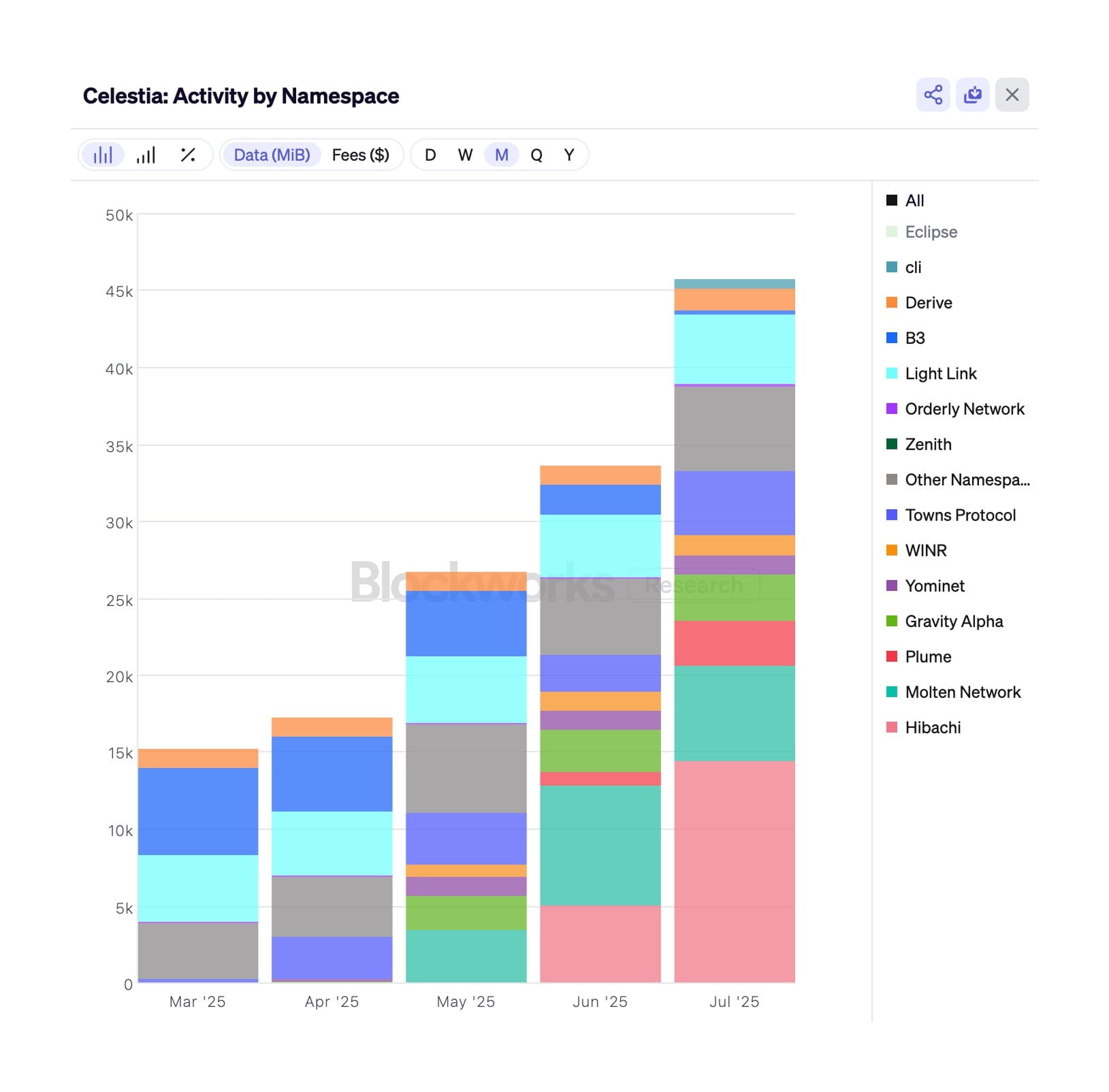 La tesi della blockchain modulare è l'unica vera soluzione per la scalabilità globale. L'Ethereum è gonfio. Le L2 hanno bisogno di disponibilità di dati (DA) a buon mercato. La Celestia è il monopolio di questo settore al momento.