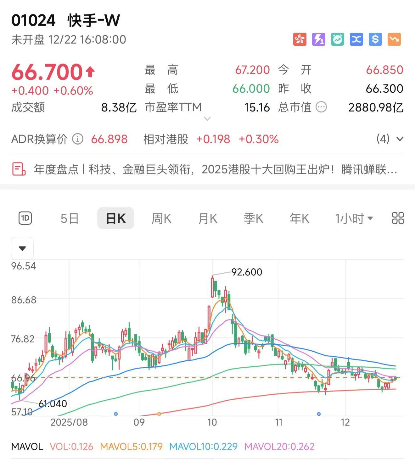 Oggi all'apertura, il prezzo delle azioni di Kuaishou (1024.HK) ha subito un impatto immediato, scendendo del 3,3% a 64,5 dollari di Hong Kong per azione. Il calo del prezzo delle azioni si è poi ampliato; al momento della pubblicazione, era sceso del 5,7%, a 62,9 dollari di Hong Kong.