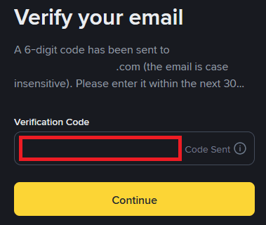 Successivamente verifichiamo il nostro indirizzo e-mail. Nella finestra sottostante inseriamo il codice di 6 cifre che abbiamo ricevuto via e-mail da Binance.