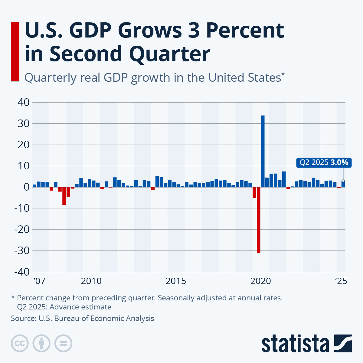 Il forte risultato del terzo trimestre segue un'espansione del 3,8% nel Q2, segnalando un continuo slancio economico dopo le precedenti debolezze dell'anno.