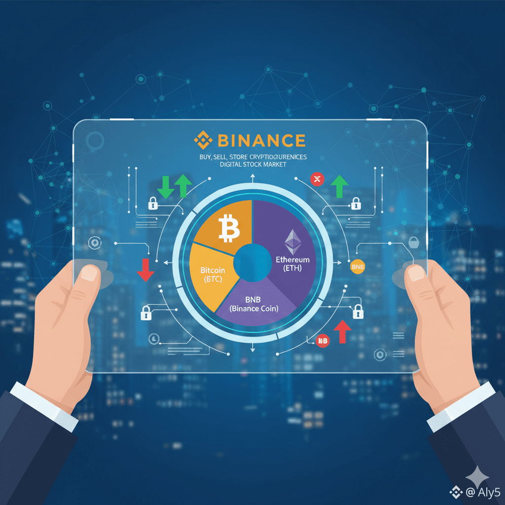 Think of Binance like a digital stock market, but instead of company shares, people trade digital coins such as: