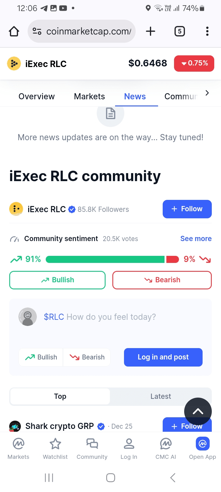 • Offerta circolante: ~72-87M $RLC