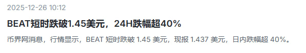 Io sono Zhou Yi, specializzato nell'analisi del mercato e nei suggerimenti sui rischi. In questo mercato in forte calo, le emozioni possono facilmente sfuggire al controllo e le operazioni possono diventare distorte. Se anche tu sei preoccupato di sbagliare il ritmo, comprare ai massimi e vendere ai minimi, seguimi. Continuerò a monitorare l'andamento di BEAT e darò avvisi in anticipo nei punti di inversione chiave.#加密市场观察 $BEAT