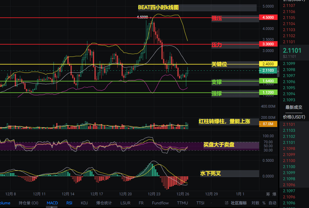 Il grafico a 4 ore di BEAT è già completamente compromesso, è sceso da 4,5 dollari senza quasi alcun rimbalzo significativo. Il MACD ha formato un incrocio ribassista sotto l'asse zero, questo è un segnale di continuazione del ribasso.