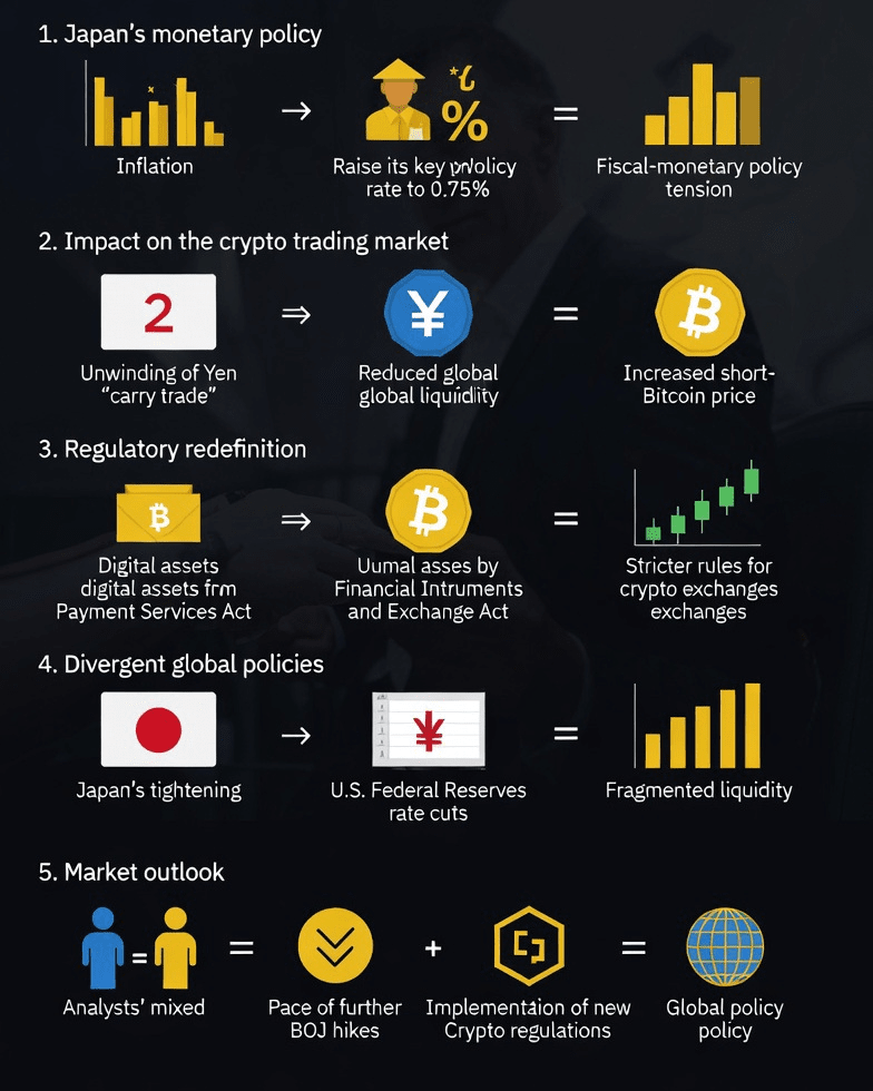 Il cambiamento nella politica monetaria del Giappone verso tassi di interesse più elevati e una revisione normativa completa stanno influenzando in modo significativo il suo mercato delle criptovalute riducendo la liquidità speculativa mentre lavorano simultaneamente per stabilire un ambiente di investimento più stabile e maturo.