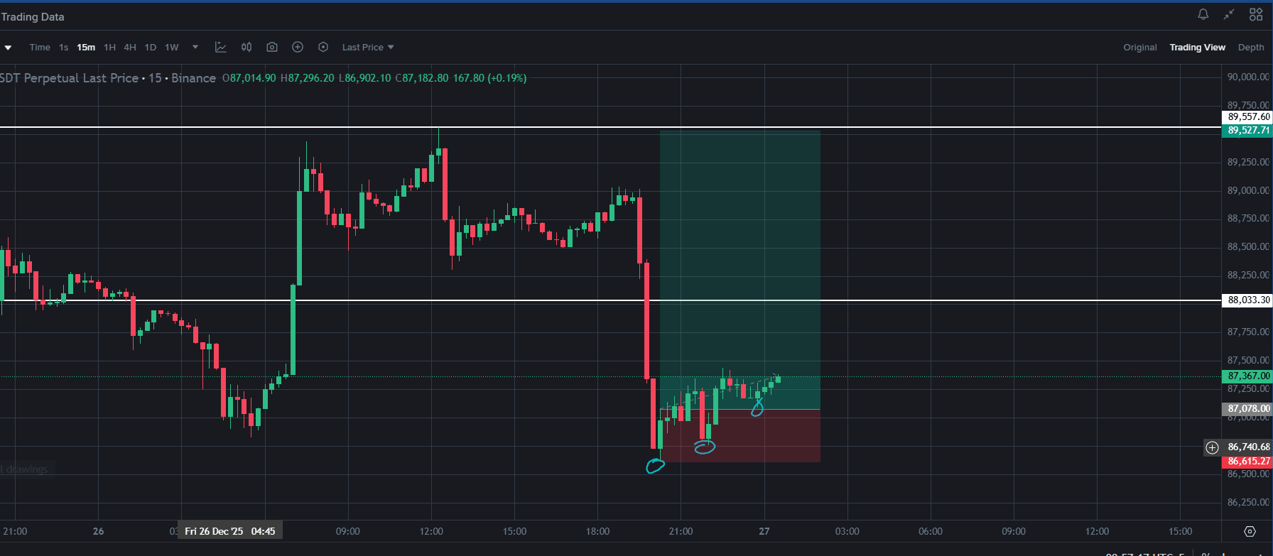 Bitcoin è sceso rapidamente, portando via i minimi ovvi dove si trovavano gli stop. Questo è un comportamento classico della liquidità. Le mani deboli entrano nel panico, i venditori forzati escono, e i venditori in ritardo entrano pensando che sia iniziato un breakdown.