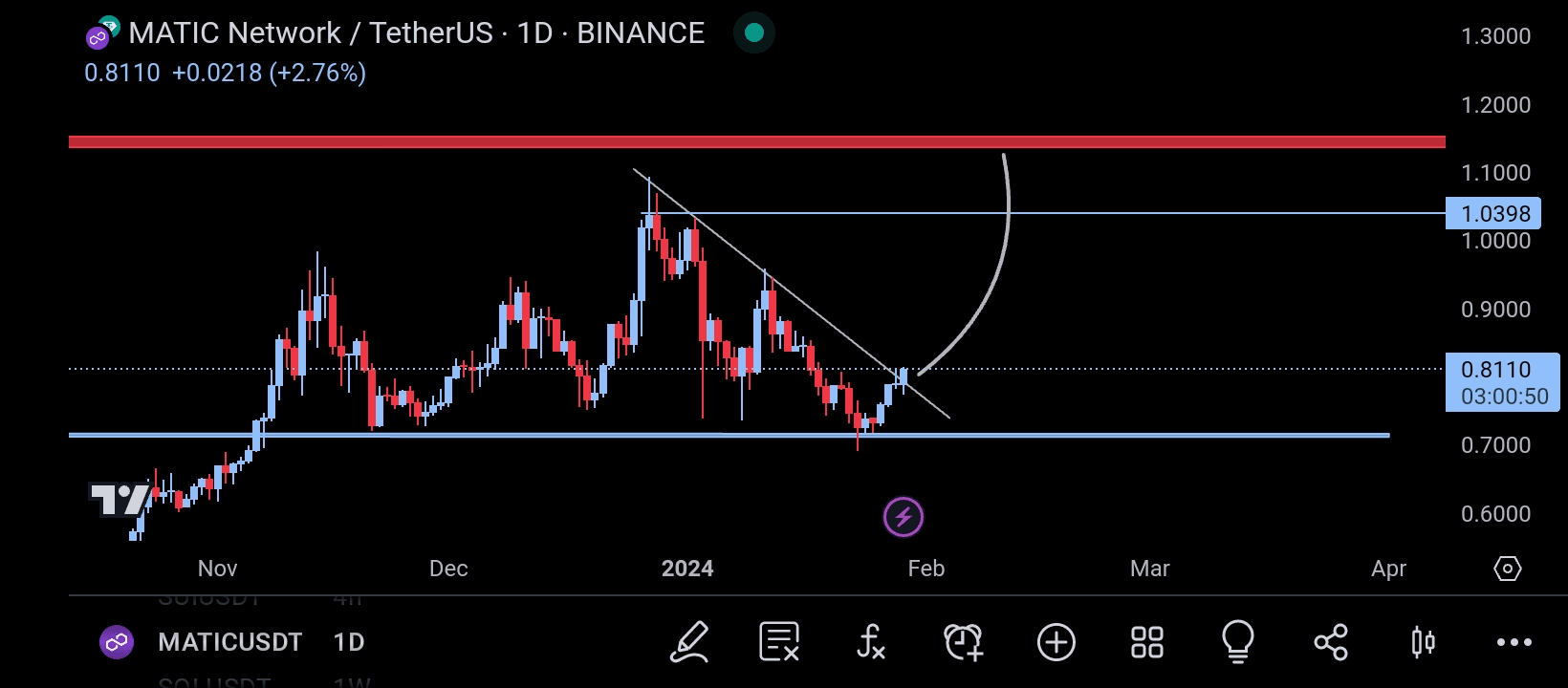 Nel time frame settimanale, c'è un gioco di Fibonacci. Il prezzo ha già rimbalzato il livello 0,50 e 0,68. Il prezzo si sta attualmente dirigendo verso $ 1,300. Se il livello di resistenza t può essere superato, allora il prossimo obiettivo di livello è $ 1,2500.#MATIC #ALT