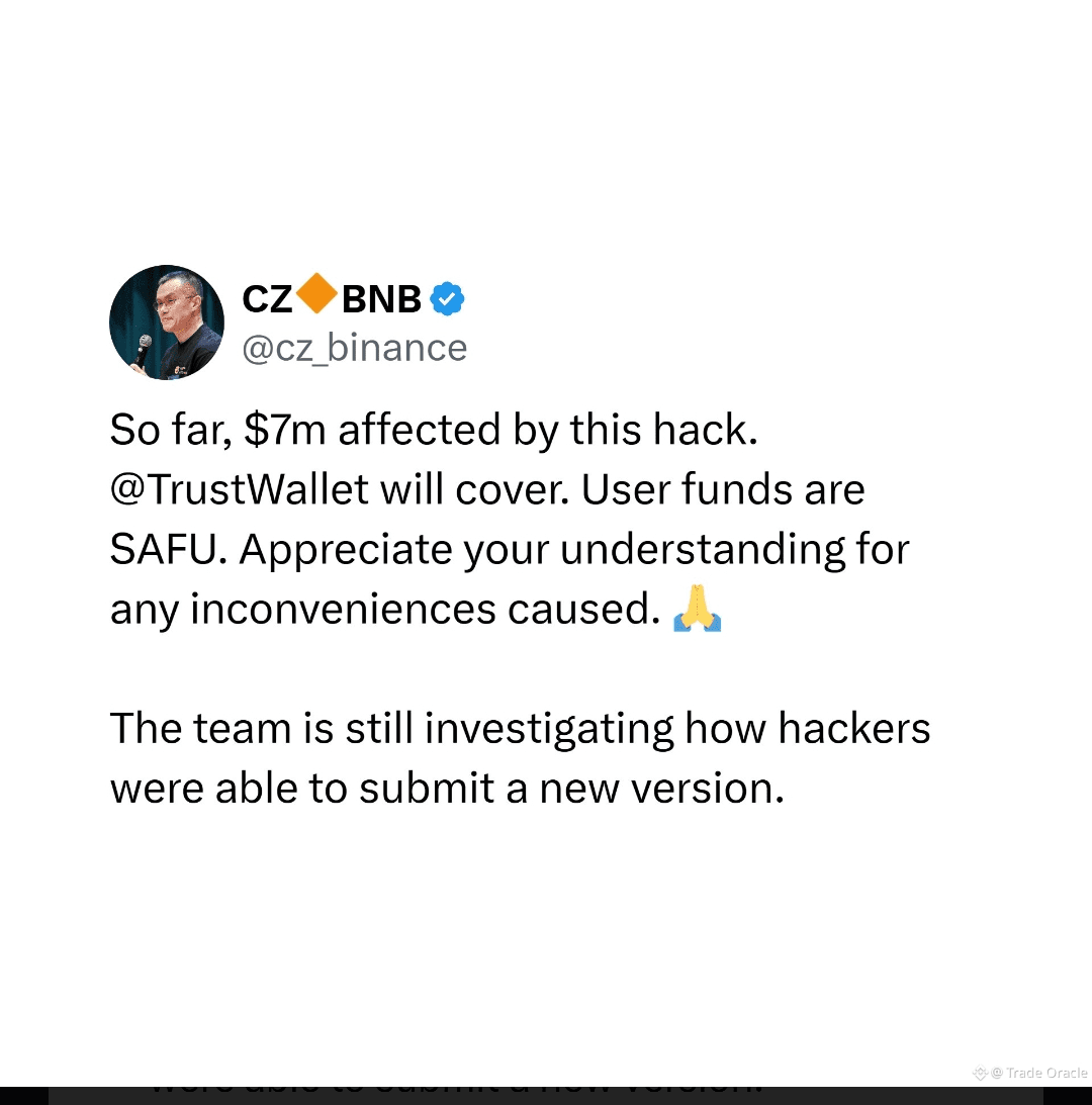 Il fondatore di Binance CZ ha confermato una violazione della sicurezza che coinvolge Trust Wallet, con circa $7 milioni rubati ๐ธ๐ฑ.$BNB