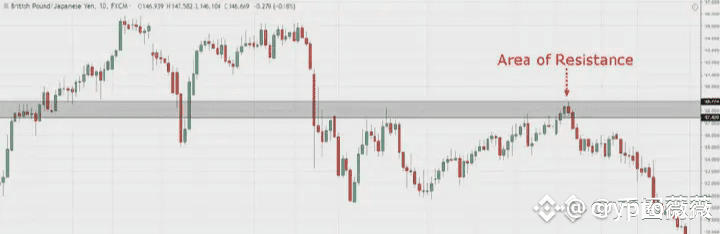 支撑位:图表上的一个水平区域,在该区域内,买家预期能够将价格推至更高水平;阻力位:图表上的一个水平区域,在该区域内,卖家预期能够将价格压至更低水平,如下图所示为具体的示例。