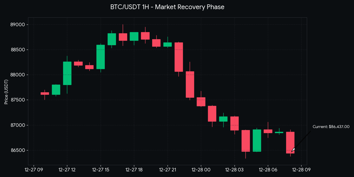 La struttura attuale del mercato indica una fase di consolidamento dopo la recente volatilità. Come si può vedere nel grafico generato BTC/USDT, il prezzo si mantiene stabile intorno al valore di 88000 USDT. Questo livello è diventato una zona di supporto critica mentre i trader attendono un segnale di breakout definitivo. Gli indicatori tecnici mostrano un RSI neutralizzato nel timeframe di 1H, suggerendo che la pressione di vendita precedente è diminuita, permettendo un periodo di accumulazione sano.