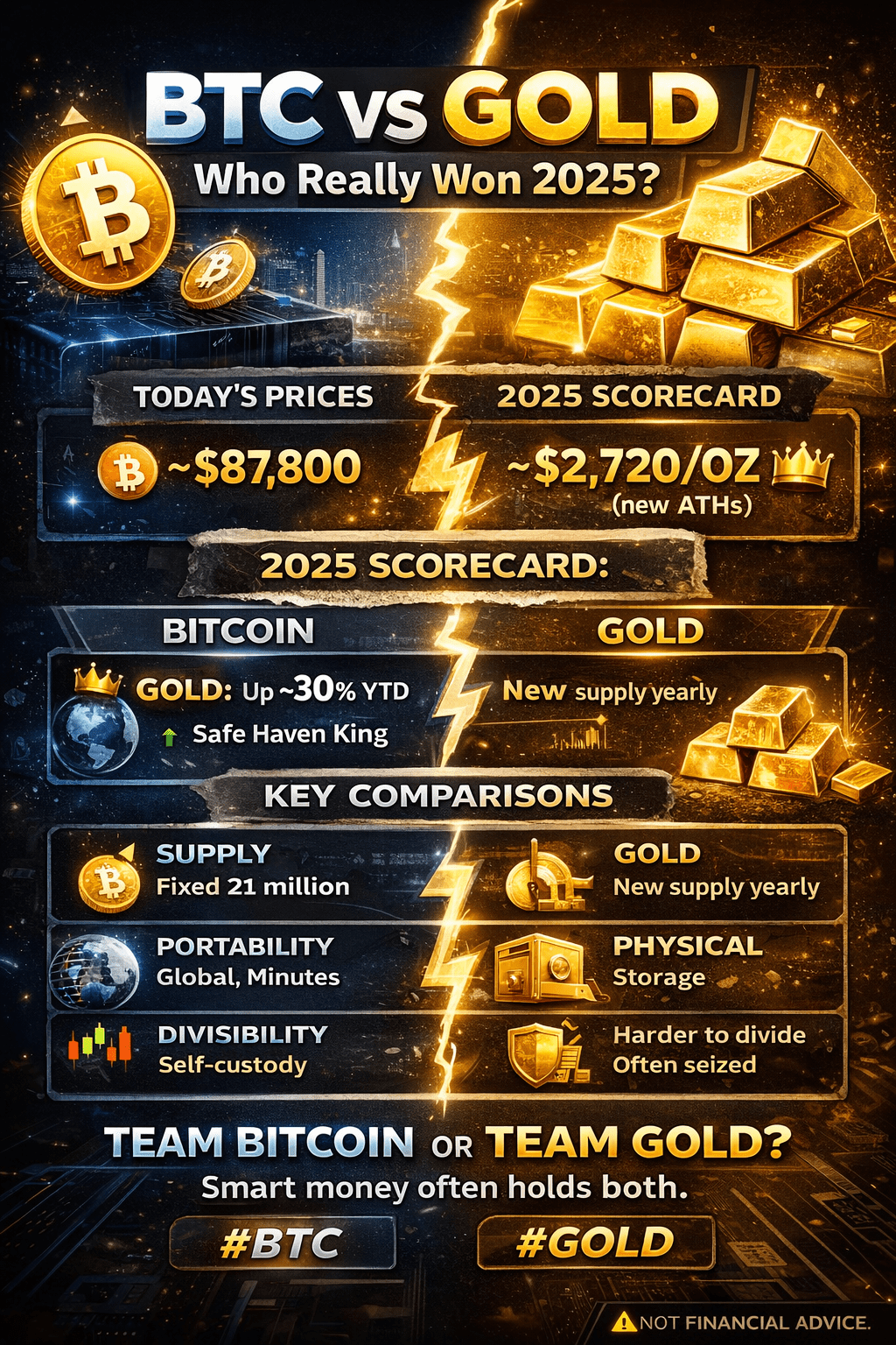 Con la fine del 2025, il dibattito di lunga data tra Bitcoin e Oro merita un’analisi chiara, basata su performance reali e non su hype.