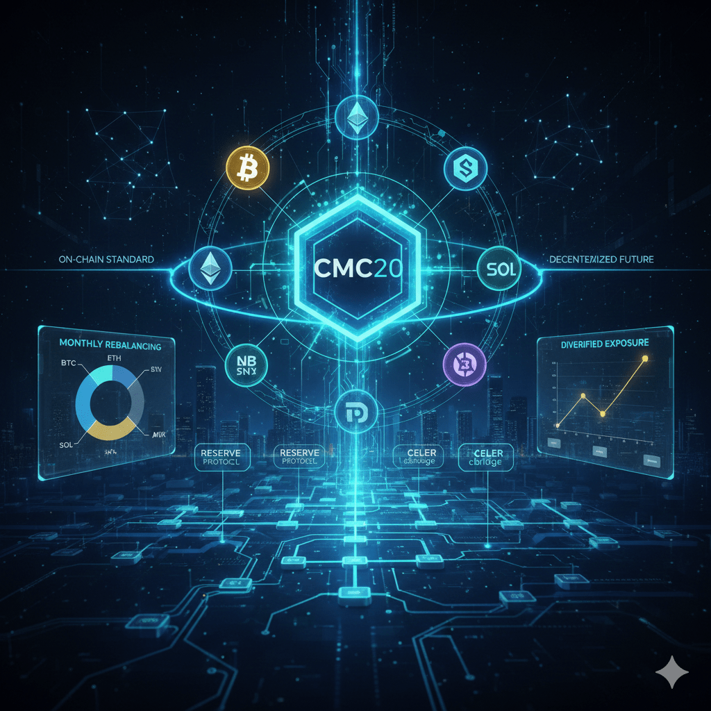 L'indice CoinMarketCap 20 DTF (CMC20) è un token indice decentralizzato che tiene traccia delle prime 20 criptovalute per capitalizzazione di mercato, progettato per semplificare l'esposizione diversificata alle criptovalute.