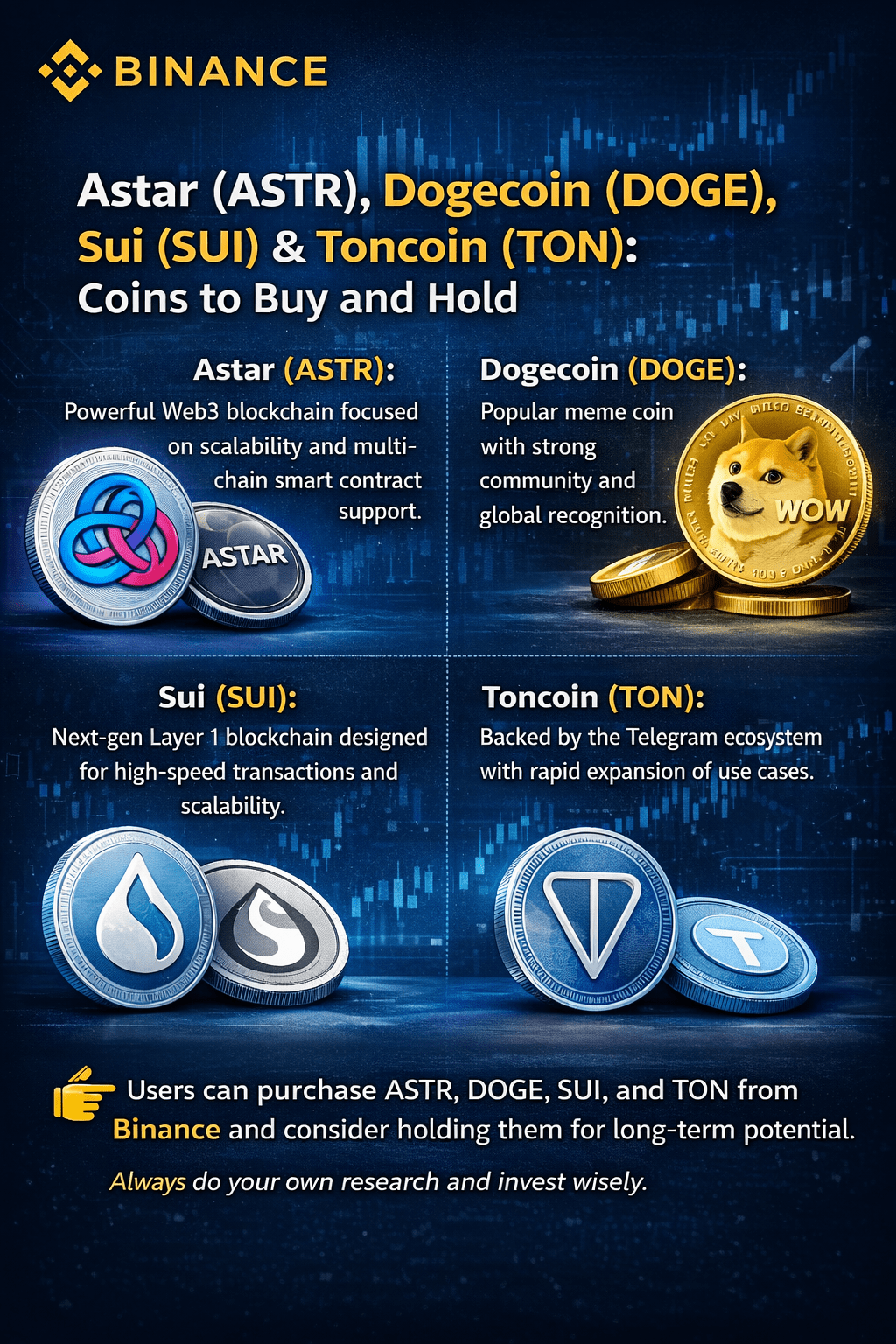 👉 Gli utenti possono acquistare ASTR, DOGE, SUI e TON su Binance e considerare di trattenerli per un potenziale a lungo termine.