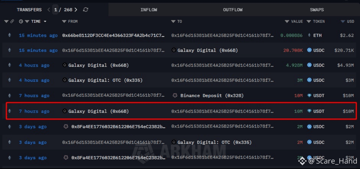 A wallet reportedly linked to crypto financial services firm Galaxy Digital transferred 10 million USDT to Binance approximately six hours ago.