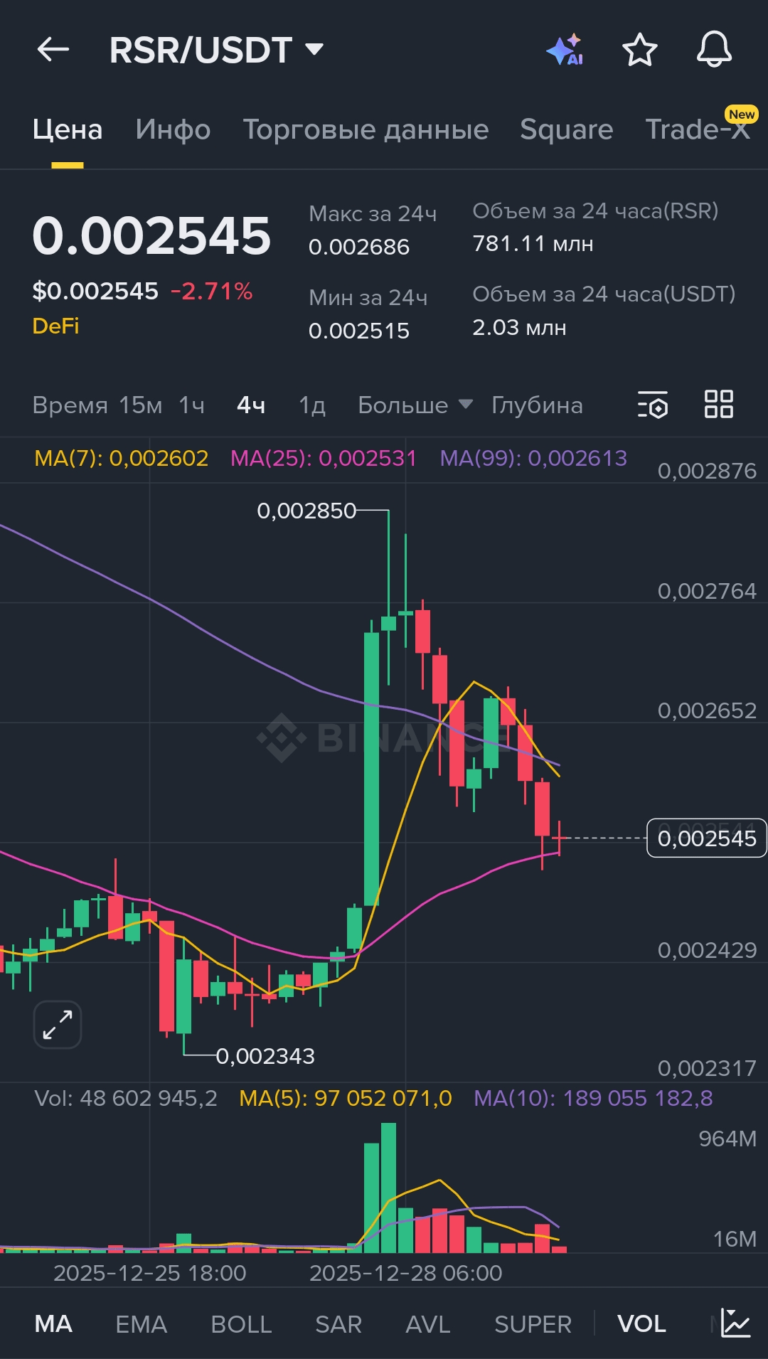 Il prezzo di RSR attualmente è ~0.00254 - 0.00260💲