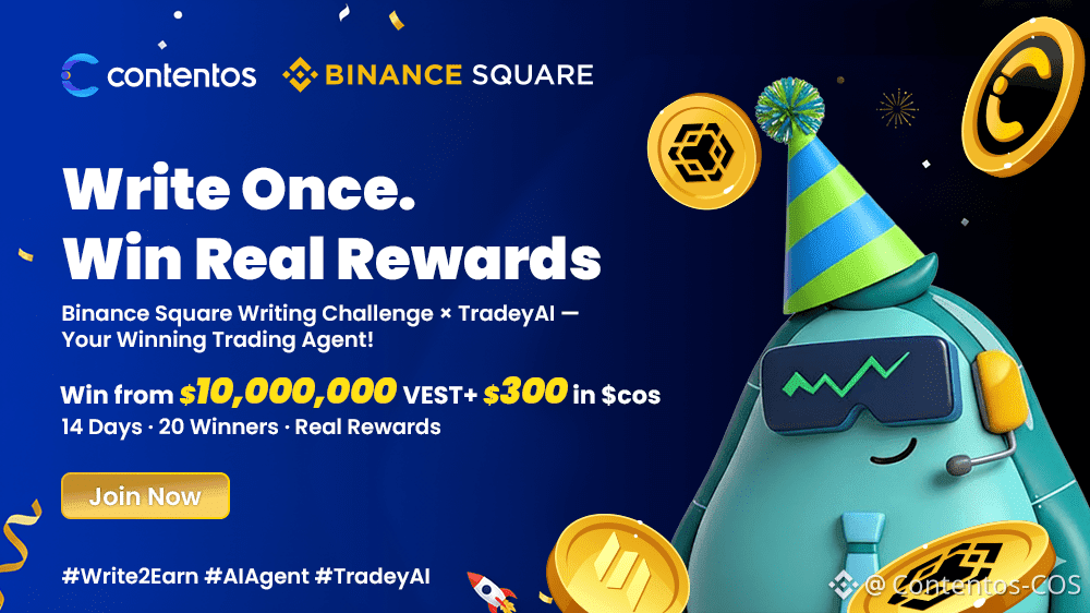 To encourage more creators and traders to explore AI-driven trading tools like TradeyAI, Contentos is launching a 14-day Writing Challenge on Binance Square.