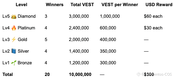 Total: 10,000,000 VEST (loan-based) + $300 USD in $COS