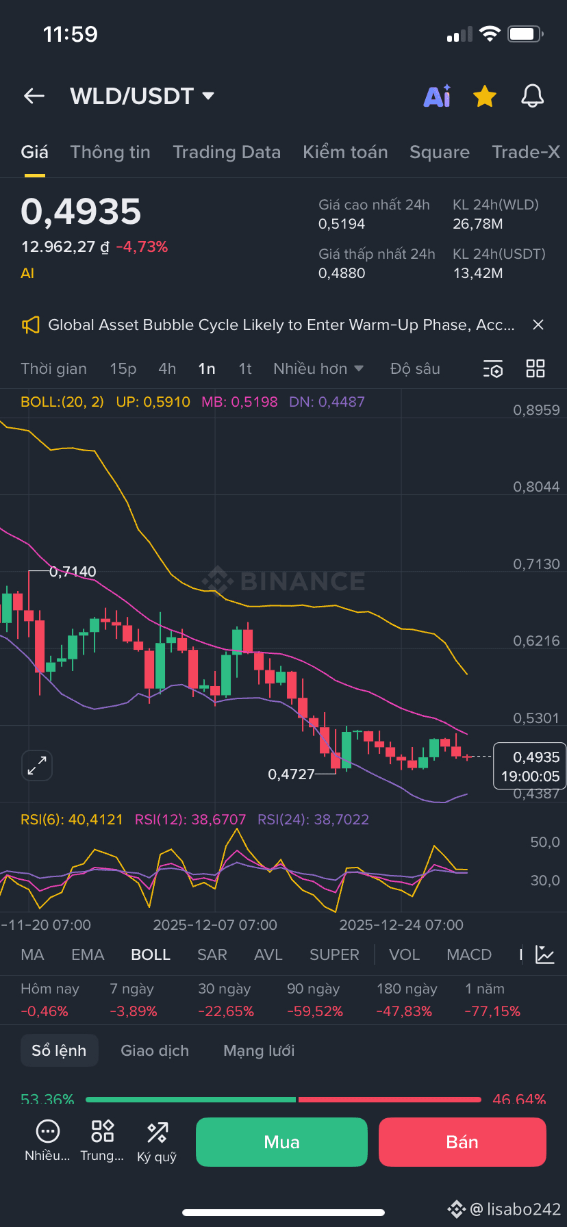 Tính biến động: WLD là tài sản cực kỳ biến động với biến động giá lớn trong 3–12 tháng qua.