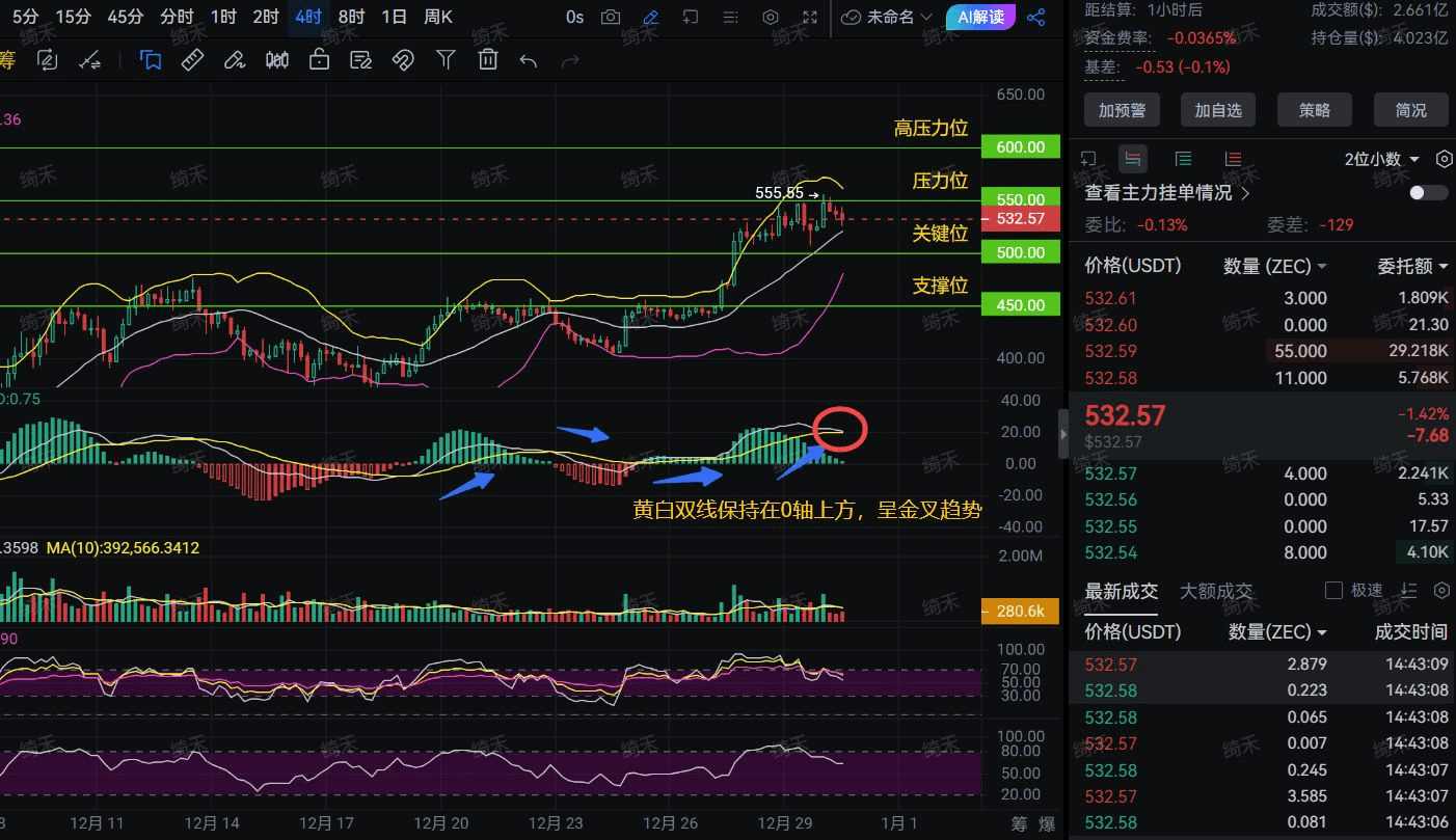 Amici, sono Qi He. Ho appena visto una notizia e, combinandola con il grafico a 4 ore che ho, sento che il mercato di ZEC stasera è carico di tensione. Un enorme conflitto si presenta davanti a noi, capirlo è fondamentale per sapere come procedere.