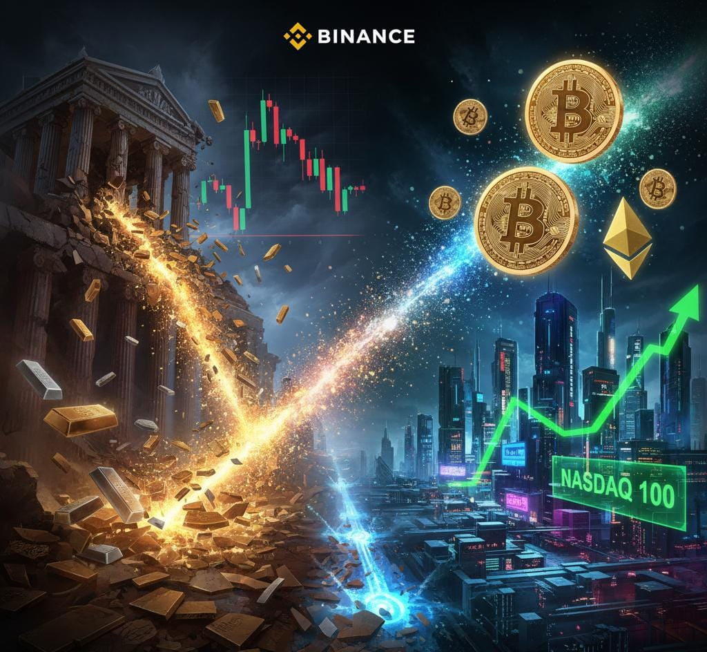 Stiamo assistendo a un cambiamento della narrativa globale: dal rifugio fisico alla scarsità digitale. Aspetterai che cada il #oro o ti posizionerai prima della grande rotazione?