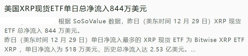Guarda di nuovo la notizia: l'ETF spot XRP negli Stati Uniti ha registrato un afflusso netto di 8,44 milioni di dollari in un solo giorno! Ragazzi, non è una cifra da poco, soprattutto per l'ETF di Bitwise, che ha attirato 5,18 milioni di dollari in un giorno, con un afflusso totale storico di 253 milioni di dollari. Cosa significa questo? Le istituzioni e i grandi capitali stanno approfittando delle opportunità di acquisto di XRP attraverso canali ufficiali, il che è un chiaro segnale positivo! In aggiunta, c'è la possibilità che la Federal Reserve riduca i tassi d'interesse, e le aspettative di liquidità globale stanno aumentando, il che potrebbe favorire il mercato delle criptovalute. Queste notizie sono come benzina, pronte a far esplodere il mercato in qualsiasi momento.