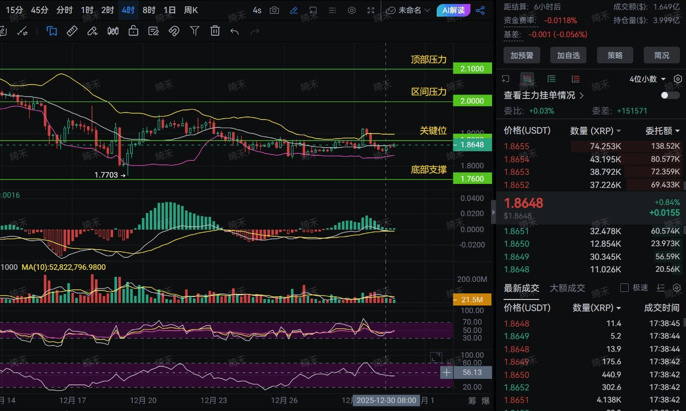 Amici, sono Qi He! Ho appena esaminato il grafico a candele e ho notato che stasera XRP sta per fare qualcosa di grande: il grafico orario sta scendendo, ma il MACD ha segnalato un incrocio rialzista, è praticamente una "guerra silenziosa". Molti fan mi chiedono: "Qi He, stasera XRP salirà a 2.0 o scenderà a 1.76? Dovrei investire tutto o scappare?" Non preoccupatevi, come vostro analista finanziario senior, vi spiegherò in termini semplici e condividerò anche alcune informazioni utili sul trading di criptovalute, garantendo che dopo aver letto, avrete le idee chiare!