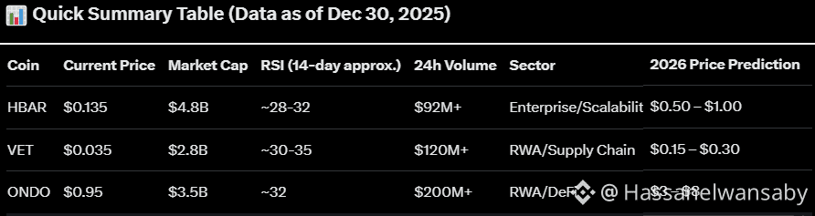 As a pro crypto trader with over 10 years in the game, I've crunched the latest data from CoinMarketCap, CoinGecko, Binance, Mudrex, and CoinCodex to handpick 3 undervalued altcoins listed on Binance. These are solid projects in RWA, enterprise scalability, and tokenized assets—with market caps under $5B, strong daily volumes over $50M, oversold signals (RSI near or below 30 in recent dips), real utility, big partnerships (like IBM, Walmart, BlackRock), and massive catalysts lined up for the 2026 bull extension.No meme coin hype here—just fundamentals primed for explosive growth as institutional inflows hit $4B+ weekly and RWA tokenization targets trillions.