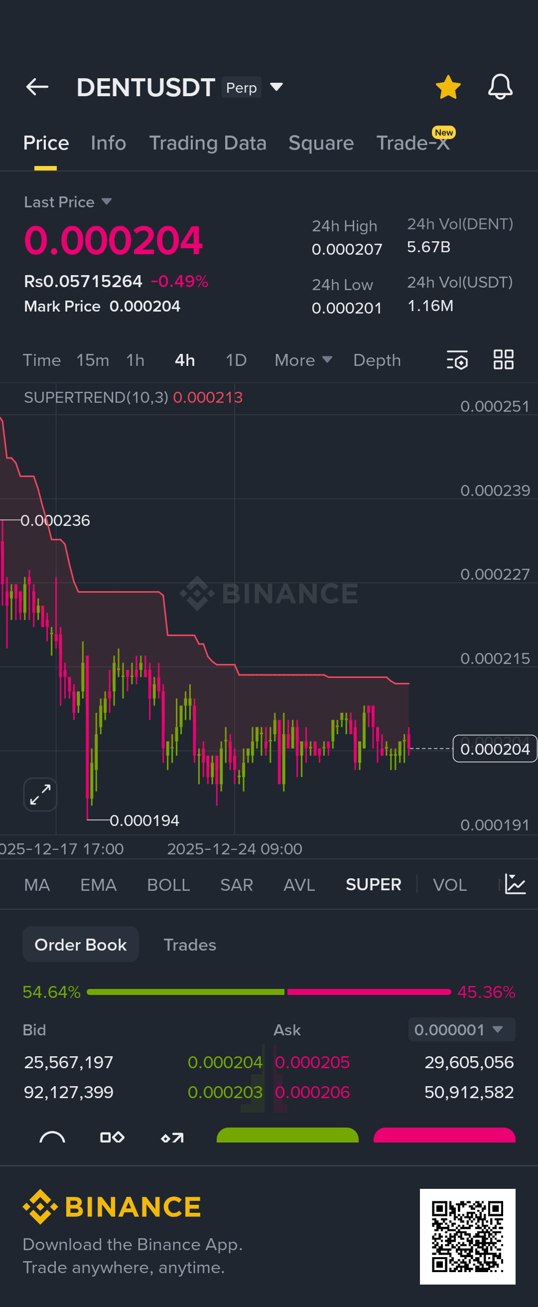 📈 Coppia di scambio attuale (DENT/USDT)