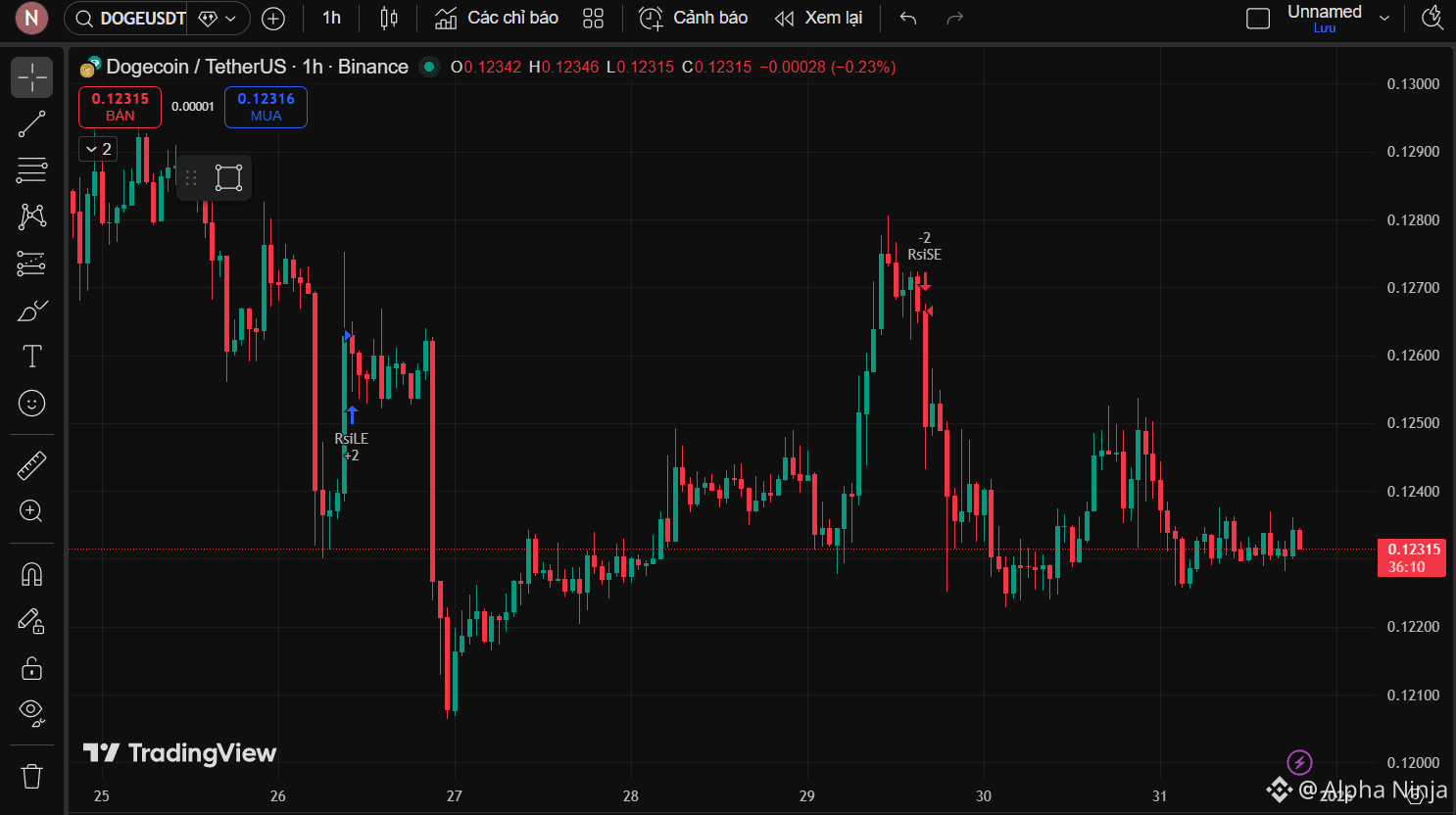 Đám đông đang bắt đầu nản lòng khi nhìn Dogecoin trượt dài từ đỉnh ngắn hạn quanh $0.128 về mốc $0.123. Những người từng tin vào một cú đẩy thần tốc cuối năm giờ đây đang vội vã tháo hàng khi thấy giá liên tục tạo các đỉnh sau thấp hơn đỉnh trước trên khung 1H. Hành vi giá cho thấy phe mua đang hụt hơi sau nỗ lực bứt phá không thành, nhường chỗ cho áp lực chốt lời từ các ví cá voi. Đây là pha "thanh lọc" holder cần thiết để thiết lập lại mặt bằng giá mới trước khi bước vào chu kỳ 2026 đầy biến động.