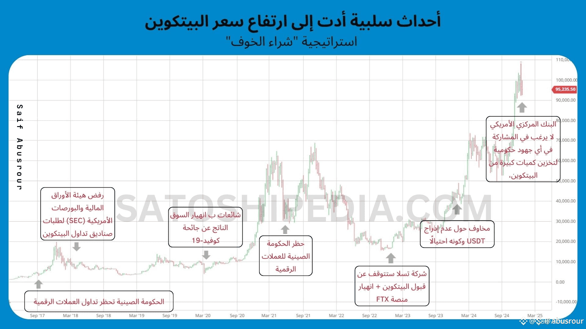 كنت طرحت هاي الفكرة بشهر مايو 2025 عندما كان سعر البيتكوين حوالي 98 ألف دولار، ووقتها اوضحت إن الأحداث السلبية المتكررة تاريخيًا ما كانت نهاية السوق، بل كانت بداية موجة صعود جديدة — وفعلاً هذا اللي صار.