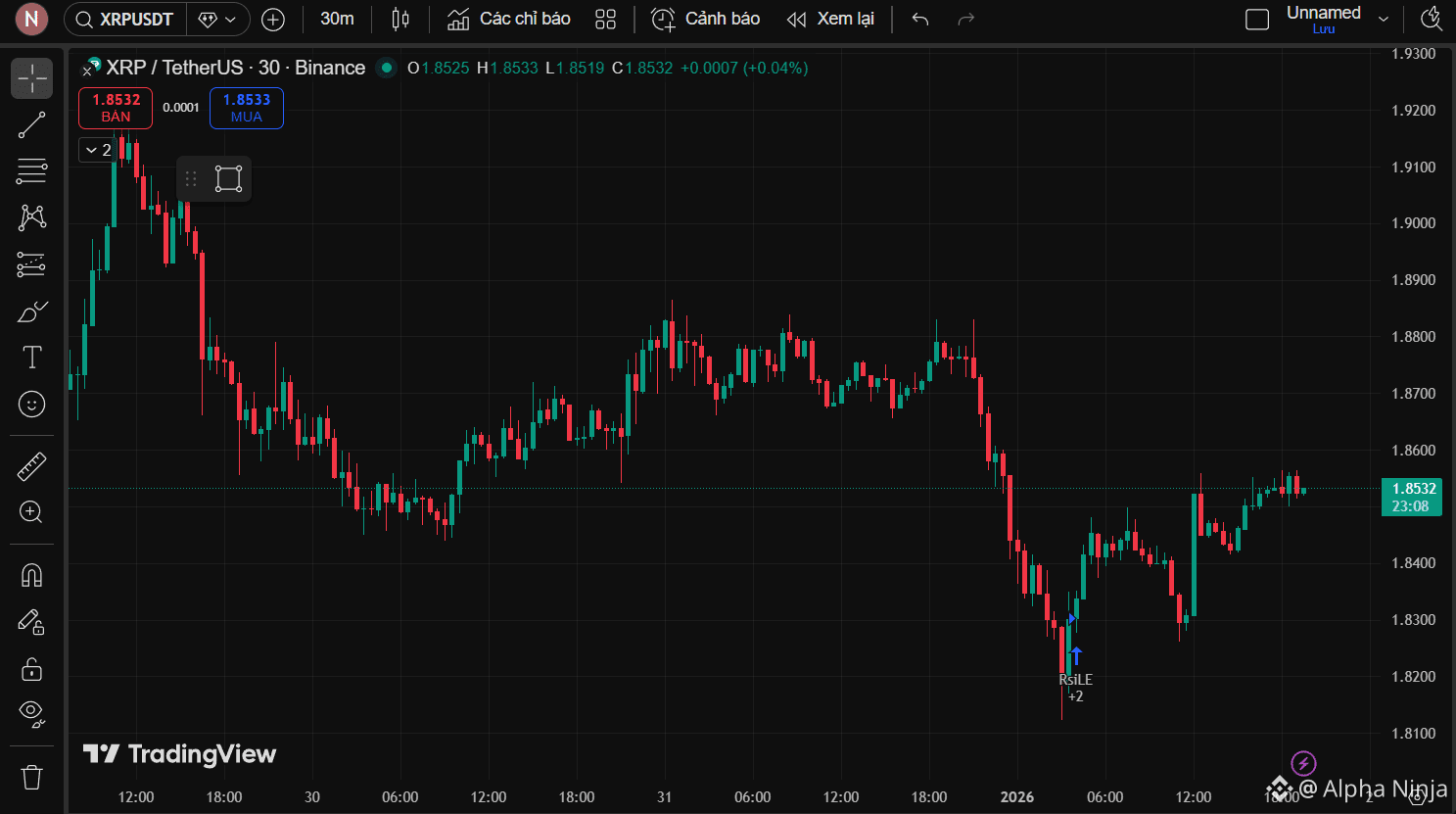Phân tích giá XRP, nến đang đi vào vùng tích lũy cuối cùng của mô hình nén sau khi test lại mốc hỗ trợ cứng quanh 1.8200. Mùi pump xuất hiện khi chart liên tục tạo các vùng rút chân mạnh mẽ ngay khi chạm vào hỗ trợ 1.8300.