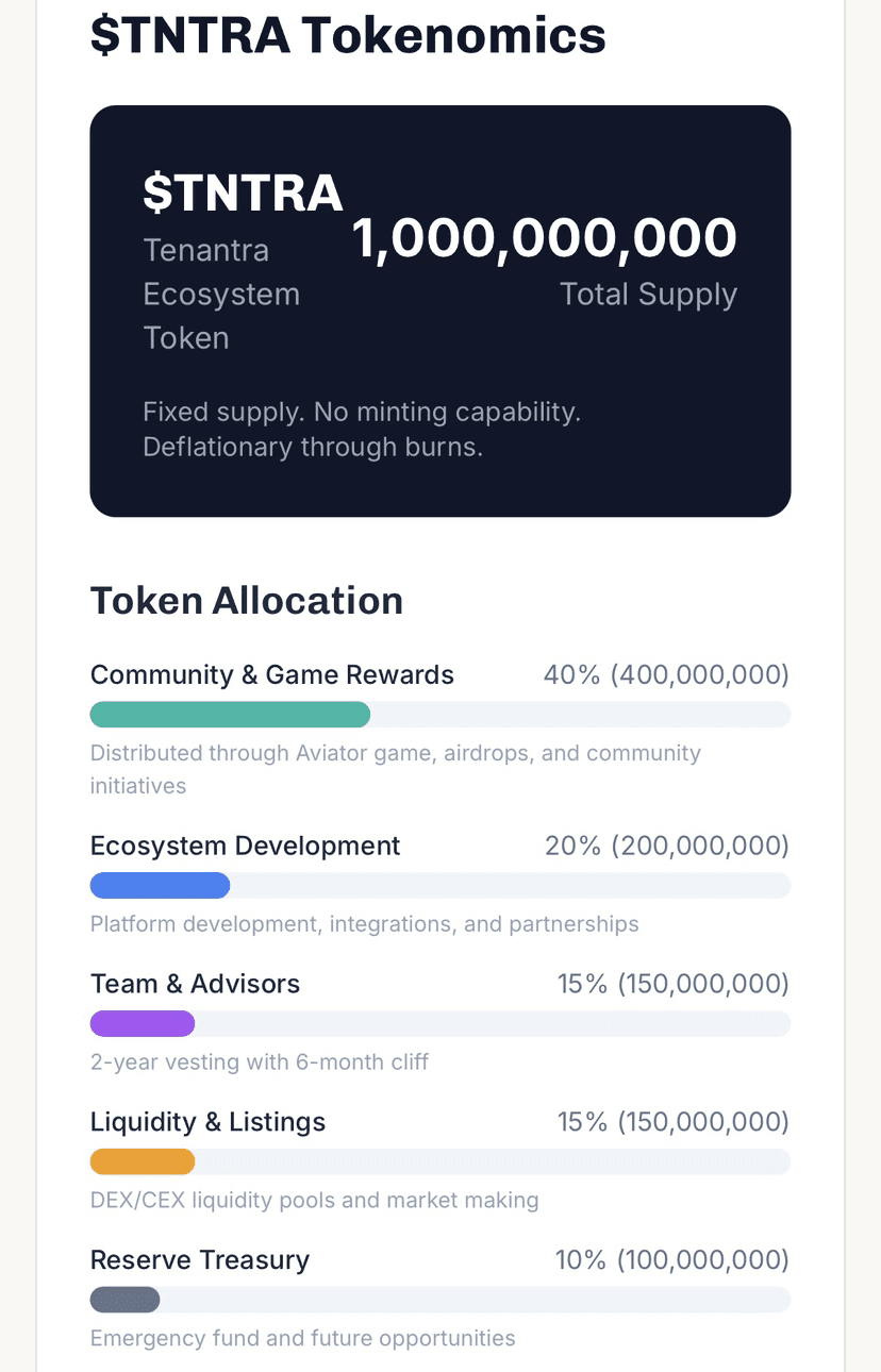 Il gioco Aviator Tenantra è molto di più del semplice intrattenimento: è un motore per la costruzione di una comunità che distribuisce i token $TNTRA in modo equo, creando al contempo sostenitori appassionati fin dalle prime fasi.