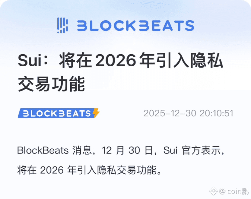 最近BlockBeats的一则消息:$SUI 即将加入隐私交易功能。