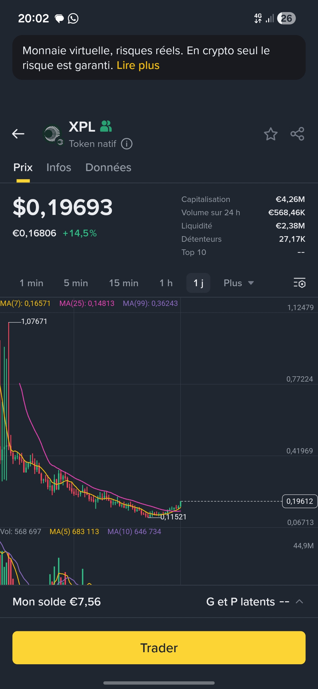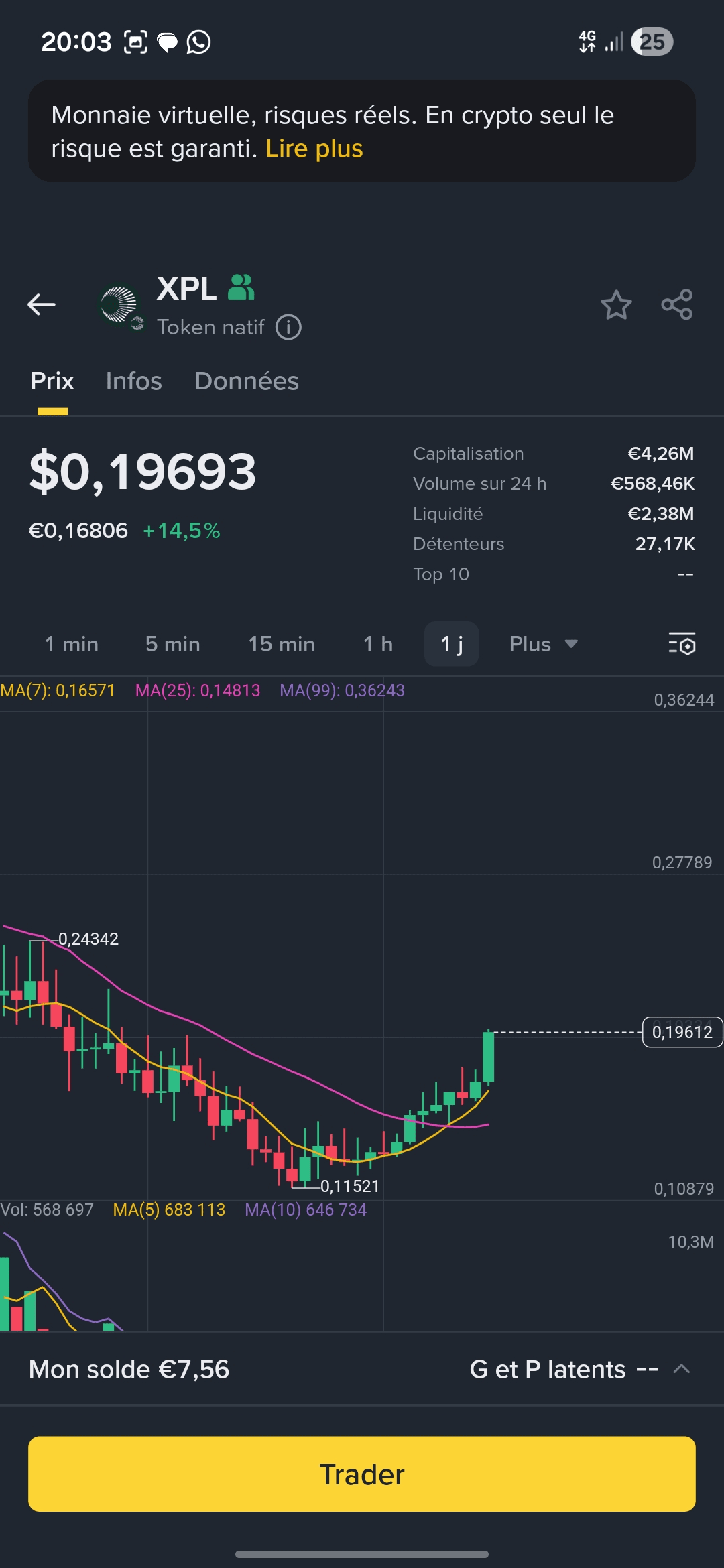 Quello vero è sulla rete #PlasmaXPL questa nuova rete è da 3 mesi su binance e ha conosciuto solo una grande correzione da 4 mesi, dopo una lunga discesa è ora da diversi giorni in costante salita (con delle correzioni ovviamente).