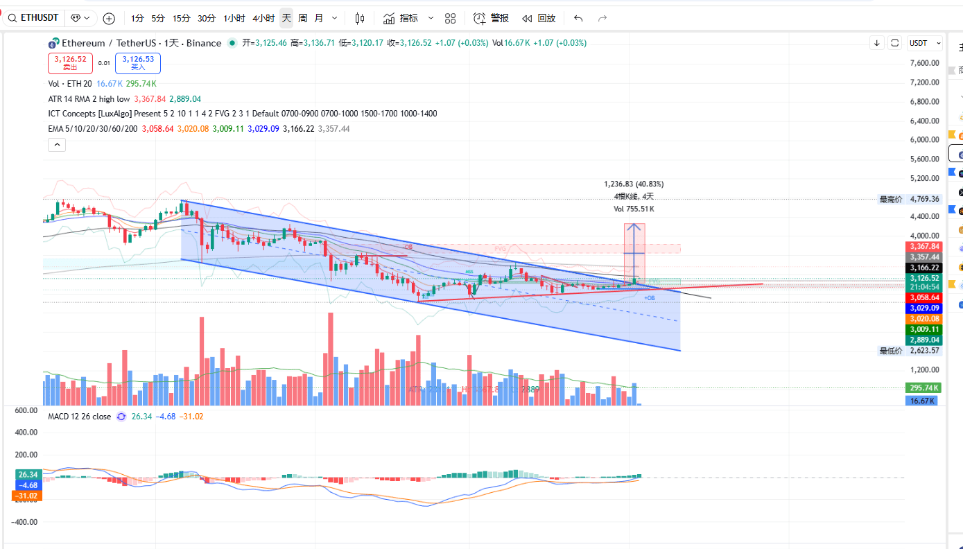 Il trend di ETH sul grafico settimanale si è ormai concretizzato. Con il supporto fondamentale di Tom Lee e la liquidità della Fed, i prezzi intorno a 3000 non rappresentano affatto una "scommessa", ma una posizione vincente grazie alla risonanza tra trend e fondamentali.