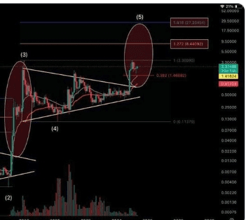 Le estensioni di Fibonacci applicate alle onde di espansione precedenti mostrano che XRP ha raggiunto storicamente il massimo vicino ai livelli 1,272 e 1,618. Questi livelli si allineano ora intorno a 8,44 dollari e 27,23 dollari, in base alle misurazioni storiche.