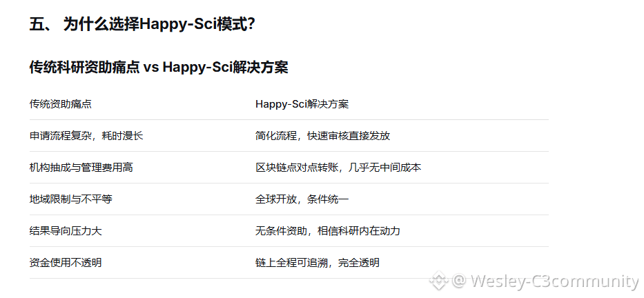 DeSci(去中心化科学)愿景:传统科研资助体系存在门槛高、流程复杂、地域不均等问题。Happy-Sci借鉴DeSci理念,通过区块链技术实现透明、直接、无国界的科研资助